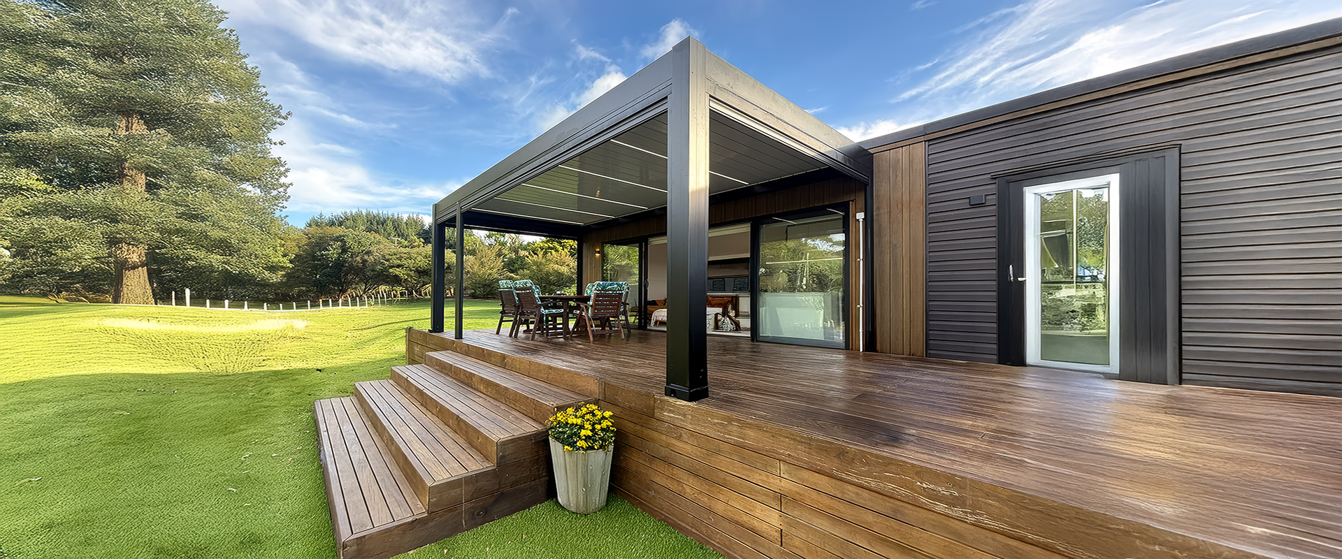 Experience ultimate outdoor luxury with our Deluxe Louvre system. This innovative design seamlessly blends your space with nature, offering health, eco-friendly benefits, and natural energy savings. Effortlessly adjust for sun, breeze, wind, or rain, then transform the ambiance with vibrant, customizable lighting. It’s your personalized, adaptable haven, designed for unparalleled comfort and style.